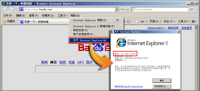 (1)檢查IE版本。點擊IE菜單條上的“幫助”菜單,在展開的下拉菜單里選擇“Internet Explorer”,在彈出的窗口中,Internet